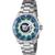 Silver-tone stainless steel case and bracelet. Uni-directional rotating white and silver and blue stainless steel bezel. Green and orange and silver and white and blue dial with silver-tone hands and index hour markers. Minute markers around the outer rim. Dial Type: Analog. Luminescent hands and markers. Date display at the 3 oclock position. Hattori Caliber PC32 quartz movement. Scratch resistant Flame Fusion crystal. Pull / push crown. Solid case back. Round case shape, case size: 47 mm. Band width: 24 mm, band length: 7.50 inches. Fold over clasp. Water resistant at 100 meters / 330 feet. Functions: date, hour, minute, second. Mlb Series. Casual watch style. Watch label: Japan Movt. Invicta MLB Seattle Mariners Quartz Mens Watch 43478.