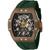 Silver-tone and khaki stainless steel case with a green silicone strap. Fixed khaki stainless steel bezel. Transparent and green dial with khaki hands and Arabic numeral hour markers. Minute markers around the outer rim. Dial Type: Analog. Luminescent hands and markers. Caliber 7510D automatic movement. Scratch resistant Flame Fusion crystal. Pull / push crown. Transparent see through case back. Tonneau case shape, case size: 44 mm, case thickness: 16 mm. Band width: 26 mm, band length: 8.25 inches. Buckle clasp. Water resistant at 50 meters / 165 feet. Functions: hour, minute, second. S1 Rally Series. Casual watch style. Invicta S1 Rally JM Limited Edition Automatic Mens Watch 43522.