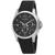 Silver-tone stainless steel case with a black rubber strap. Fixed bezel. Black dial with index hour markers. Dial Type: Analog. Luminescent hands and markers. Date display between 4 and 5 oclock position. Chronograph - three sub-dials displaying: 60 second, 30 minute and 12 oclock. Quartz movement. Scratch resistant sapphire crystal. Solid case back. Round case shape, case size: 44 mm. Push button folding clasp. Water resistant at 50 meters / 164 feet. Functions: chronograph, date, hour, minute, second. Conquest Series. Dress watch style. Watch label: Swiss Made. Longines Conquest Chronograph Quartz Black Dial Mens Watch L3.727.4.66.9.