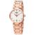 Rose gold PVD stainless steel case and bracelet. Fixed rose gold PVD bezel. Silver dial with rose gold-tone hands and index hour markers. Dial Type: Analog. Date display at the 6 oclock position. Mido calibre 80.611 automatic movement with an 80-hour power reserve. Scratch resistant sapphire crystal. Pull / push crown. Transparent case back. Case size: 33 mm. Case thickness: 10.60 mm. Round case shape. Band width: 9.50 mm. Deployment clasp with a push button release. Water resistant at 50 meters / 165 feet. Functions: date, hour, minute, second. Luxury watch style. Watch label: Swiss Made. Mido Baroncelli II Automatic Ladies Watch M022.207.33.031.10.