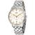 Stainless steel case with a stainless steel bracelet. Fixed stainless steel bezel. Silver dial with rose gold-tone hands and index hour markers. Minute markers around the outer rim. Dial Type: Analog. Date display above the 6 oclock position. Chronograph - two sub-dials displaying: 60 second and 30 minute. Mido calibre 60 automatic movement, based upon Valjoux 7753, containing 27 Jewels, bitting at 28800 vph, and has a power reserve of approximately 60 hours. Scratch resistant sapphire crystal. Transparent case back. Round case shape. Case size: 42 mm. Case thickness: 15 mm. Band width: 21 mm. Fold over clasp. Water resistant at 50 meters / 165 feet. Functions: chronograph, date, hour, minute, second. Belluna II Series. Casual watch style. Watch label: Swiss Made. Mido Belluna II Chronograph Automatic Mens Watch M024.427.11.031.00.