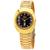 Yellow gold CVD stainless steel case and bracelet. Fixed yellow gold CVD bezel. Black dial with yellow gold-tone hands and diamond hour markers. Minute markers around the outer rim. Dial Type: Analog. Day of the week and date display above the 6 oclock position. Quartz movement. Scratch resistant sapphire crystal. Pull / push crown. Solid case back. Round case shape. Case size: 35 mm. Case thickness: 10.1 mm. Band width: 18 mm. Hidden fold over clasp. Water resistant at 30 meters / 100 feet. Functions: date, day, hour, minute, second. Dress watch style. Watch label: Swiss Made. Rado Original Black Dial Mens Watch R12304313.