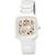 White high-tech ceramic and titanium case and bracelet. Fixed white high-tech ceramic bezel. White (skeleton/ open-heart) dial with gold-tone hands and index hour markers. Minute markers around the outer rim. Dial Type: Analog. Automatic movement with an 80-hour power reserve. Scratch resistant sapphire crystal. Transparent case back. Square case shape, case size: 38 mm, case thickness: 9.7 mm. Fold over clasp with a safety release. Water resistant at 50 meters / 165 feet. Functions: hour, minute, second. True Square Series. Luxury watch style. Watch label: Swiss Made. Item Variations: 01.734.6073.3.070. Rado True Square Automatic Unisex Watch R27073702.