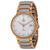 Rose gold PVD stainless steel case with a two-tone (silver-tone and rose gold PVD) stainless steel bracelet. Fixed rose gold PVD bezel. Silver dial with rose gold-tone hands and index hour markers. Minute markers around the outer rim. Dial Type: Analog. Luminescent hands and markers. Date display at the 3 oclock position. Rado calibre 658 (ETA 2824-2) automatic movement with a 38-hour power reserve. Scratch resistant sapphire crystal. Pull / push crown. Skeleton case back. Case size: 38 mm. Case thickness: 9.7 mm. Round case shape. Band width: 20 mm. Deployment clasp with a push button release. Water resistant at 30 meters / 100 feet. Functions: date, hour, minute, second. Additional Info: ref# 658.0953.3.012. in general, withstands splashes or brief immersion in water, but not suitable for swimming or bathing. Dress watch style. Watch label: Swiss Made. Rado Centrix Automatic Silver Dial Mens Watch R30953123.