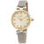 Yellow gold-tone stainless steel case with a grey stainless steel bracelet. Fixed yellow gold-tone stainless steel bezel. Champagne dial with gold-tone hands and diamond hour markers. Dial Type: Analog. Seiko Caliber 7N01 quartz movement. Scratch resistant sapphire crystal. Pull / push crown. Solid case back. Round case shape, case size: 30 mm, case thickness: 6.3. Deployment with push button release clasp. Water resistant at 50 meters / 165 feet. Functions: hour, minute, second. Dress watch style. Watch label: Japan Movt. Seiko Quartz Diamond Champagne Dial Ladies Watch SRZ546P1.