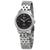 Stainless steel case with a stainless steel bracelet. Fixed stainless steel bezel. Black dial with silver-tone leaf-style hands and index hour markers. Roman numerals mark the 3, 6, 9 and 12 oclock positions. Minute markers around the outer rim. Dial Type: Analog. Date display at the 3 oclock position. ETA caliber 2671 automatic movement, containing 25 Jewels, bitting at 28800 vph, and has a power reserve of approximately 38 hours. Scratch resistant sapphire crystal. Pull / push crown. Transparent case back. Round case shape. Case size: 29 mm. Case thickness: 8.95 mm. Band width: 14 mm. Deployment clasp with a push button release. Water resistant at 30 meters / 100 feet. Functions: date, hour, minute, second. Casual watch style. Watch label: Swiss Made. Tissot Le Locle Automatic Black Dial Ladies Watch T006.207.11.058.00.
