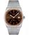 Stunning 18K gold frames a decadent brown dial on this automatic stainless steel bracelet watch from Tissot.