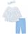 Little Me's three-piece set exudes timeless charm and comfort! Made from soft cotton, this set features a smocked tunic covered in delicate florals, a matching headband, and coordinating leggings to complete the look.