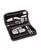This grooming shave kit contains all the essentials to remain well groomed on the go. Chrome instruments include a hexagon razor and blades, nail clippers, corkscrew knife combo, a toothbrush, nail file, comb, tweezers, scissors, pusher and shoehorn lint brush, organized in a zippered leather case.