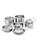 Set includes 8'' fry pan, 10'' fry pan, 1-qt saucepan with lid, 3-qt saucepan with lid, 3-qt saute pan with lid, 6-qt ducth oven with lid, 6-qt steamer insert, and 6-qt pasta insert