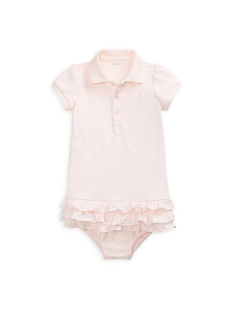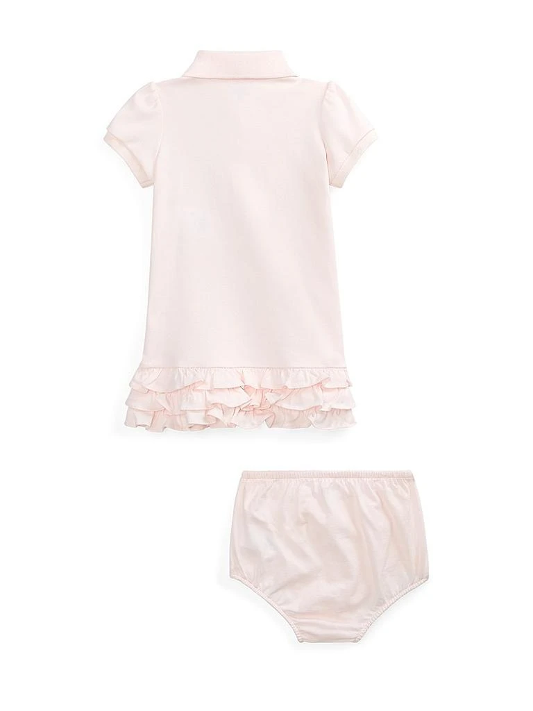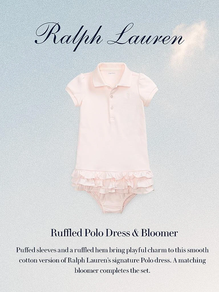 Signature polo dress finished with a fun ruffled hem and paired with matching bloomers.Made with responsibly sourced cottonButton placketShort sleevesRuffle hemIncludes matching bloomersResponsibly sourced cottonMachine washImportedThis brand fits slightly smaller. Consider ordering a size up.ABOUT THE BRANDSynonymous with Americana style since its start in 1967, Ralph Lauren's design ethos has been translated to outfit the entire family. Pint-size cardigans, miniature button-downs and petite polos tailor the house's classic pieces into timeless essentials for kids.