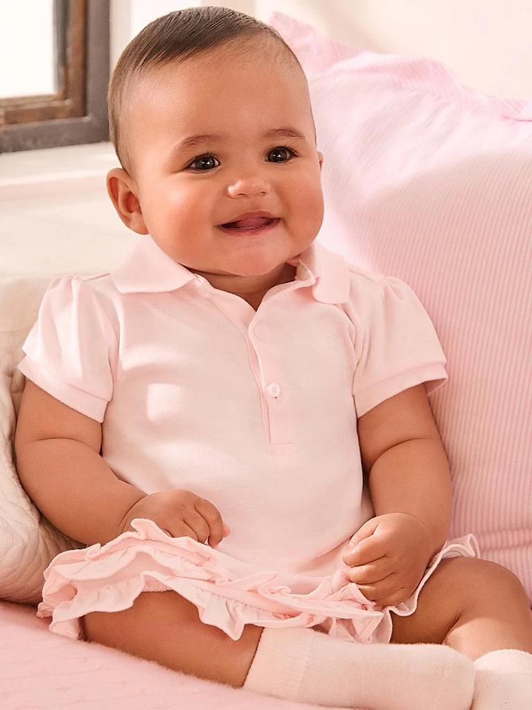 Signature polo dress finished with a fun ruffled hem and paired with matching bloomers.