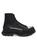EXCLUSIVELY AT SAKS OFF FIFTH. Crafted of leather, these boots from Alexander McQueen feature exaggerated rubber soles and contrast, mirrored toe caps. The brand name decorates the outer midsoles.
