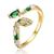 14k Yellow Gold Plated with Emerald & Cubic Zirconia Coiled Snake Serpent Open Bypass Cuff Ring. This coiled snake ring features a rich 14k yellow gold plating. Sparkling emerald-like cubic zirconias (May Birthstones) give this sneaky little snake vibrancy complemented by sparkling round brilliant cut -like cubic zirconias. Green and white enamel scales on the top complete this enchanting design. A smooth band with square-edges lends comfort to this open cuff bypass ring. Available in ring sizes - 6,7 or 8.