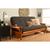 The futon is a classic hardwood frame with tray style arms. This unique and versatile full size futon sofa easily converts to a Bed. This multifunctional piece of furniture can find a home in just about any type of room.