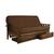 The futon is a classic hardwood frame with mission style arms. This unique and versatile full size futon sofa easily converts to a Bed. This multifunctional piece of furniture can find a home in just about any type of room.