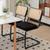 Chrome cantilever dining chair. Modern design with rattan back, velvet seat, & durable steel frame. Stackable for easy storage. Perfect for any room!