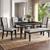 6-piece dining set - table, bench, 4 chairs. Seats 6. Sturdy MDF tabletop, rubberwood legs. Easy assembly, tools included. Elegant & comfortable!