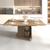 Extendable dining table with hidden storage! Waterproof, scratch-resistant triamine board & stylish striped cabinet keeps your dining room tidy.