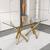 Modern glass dining table seats 6-8. Tempered glass, gold legs. Perfect for dining, kitchen, office, or patio. Easy assembly.