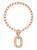 The Rabanne Bijoux Oro necklace embodies modern elegance. Made from 100% aluminum, it showcases large, elongated links that create a chunky chain. A prominent oval pendant with a polished metallic finish in warm rose gold adds to its appeal. The innovative toggle clasp secures the fit while enhancing its contemporary allure, making it an ideal accessory for any outfit. Material - 100% aluminum Chain style - Chunky with large, elongated links Pendant - Prominent oval shape Finish - Polished metallic in warm rose gold Clasp - Innovative toggle for secure fit