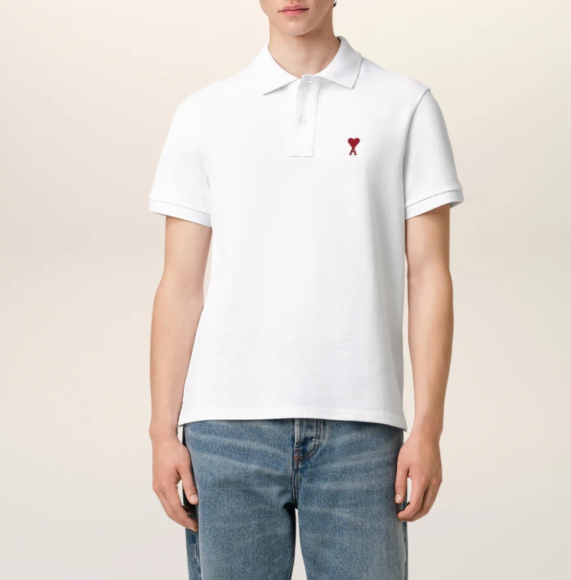 AMI男女同款经典款爱心款红色爱心刺绣棉质合身短袖POLO衫 白色 黑色 灰色(香港仓发货)