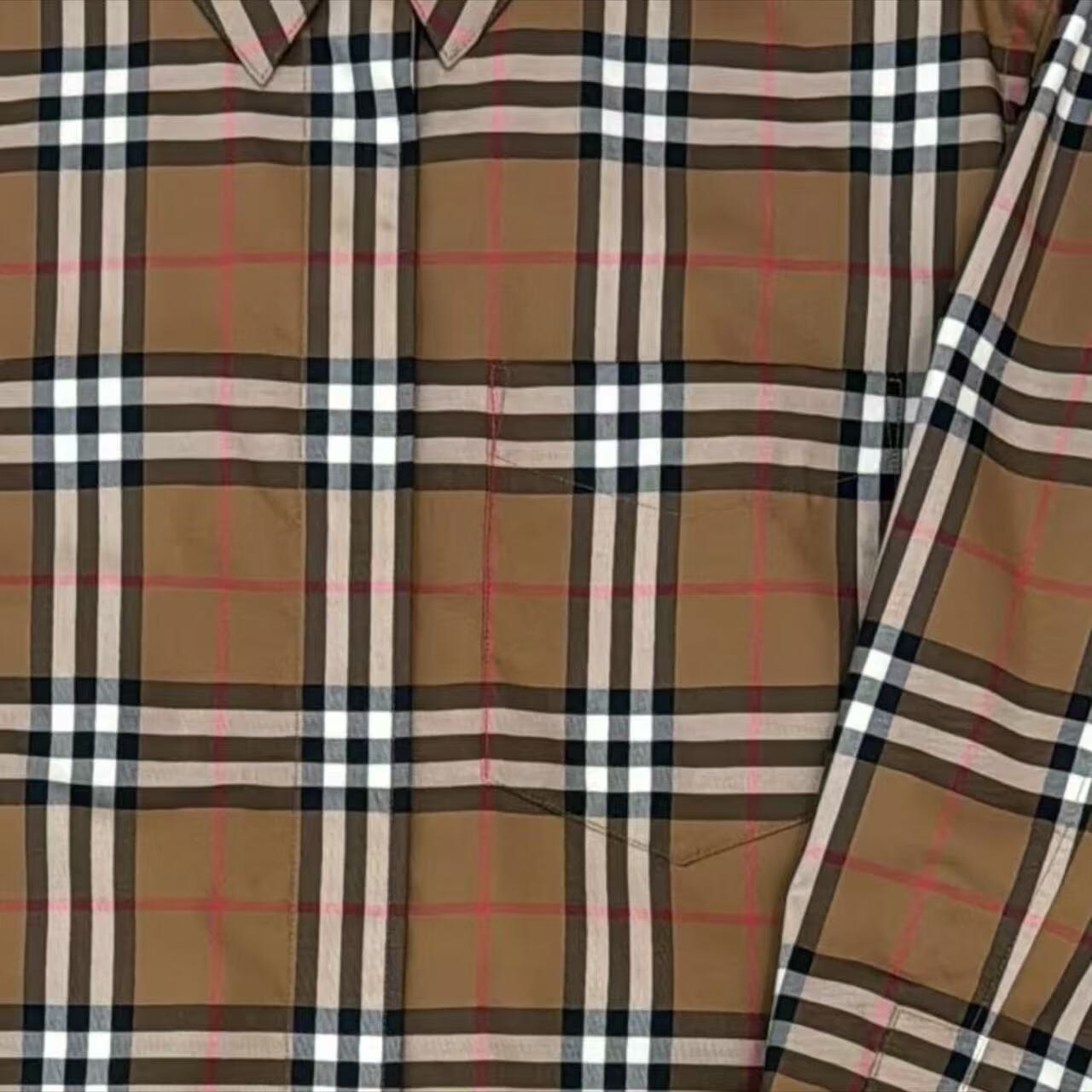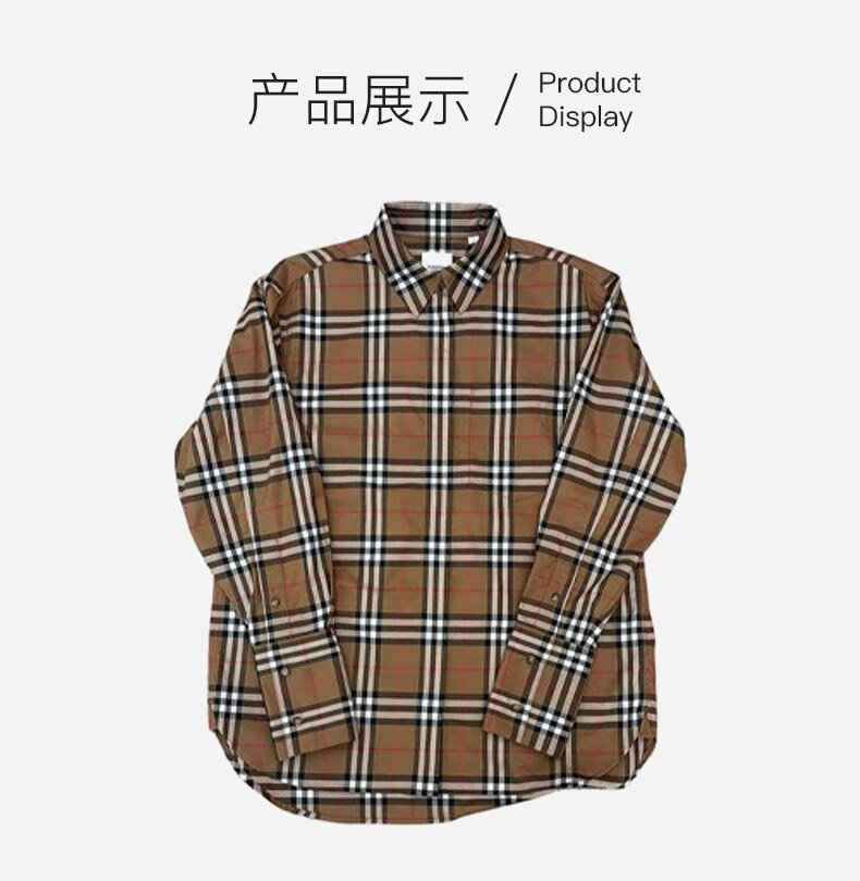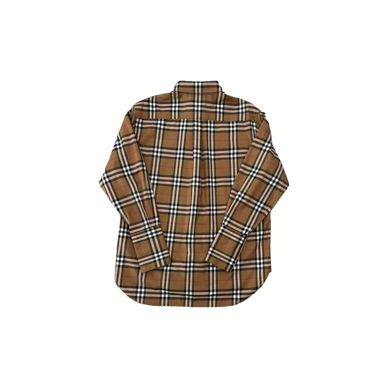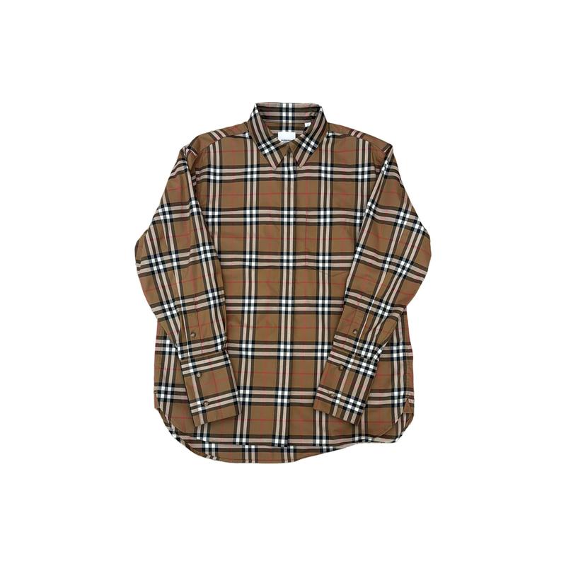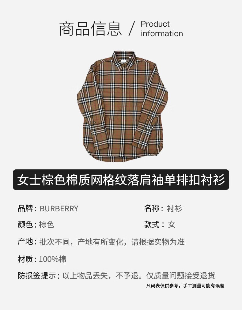 现货 Burberry/博柏利 女士棕色棉质网格纹落肩袖单排扣衬衫80934801