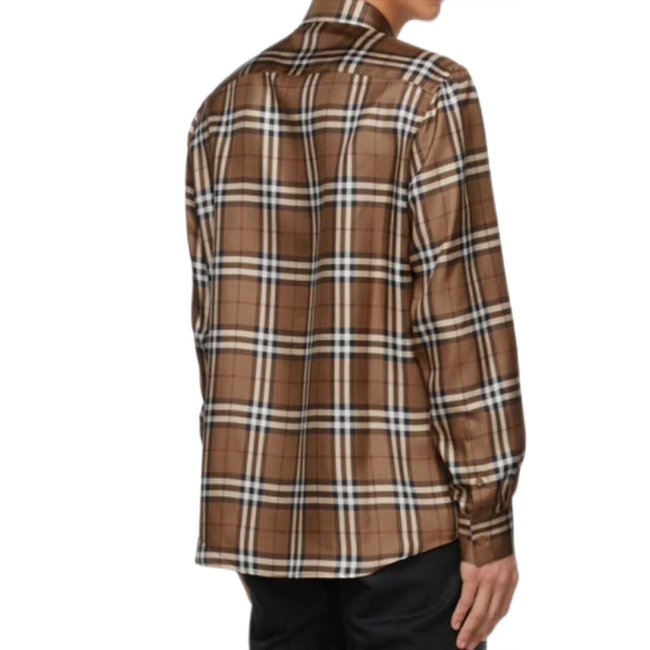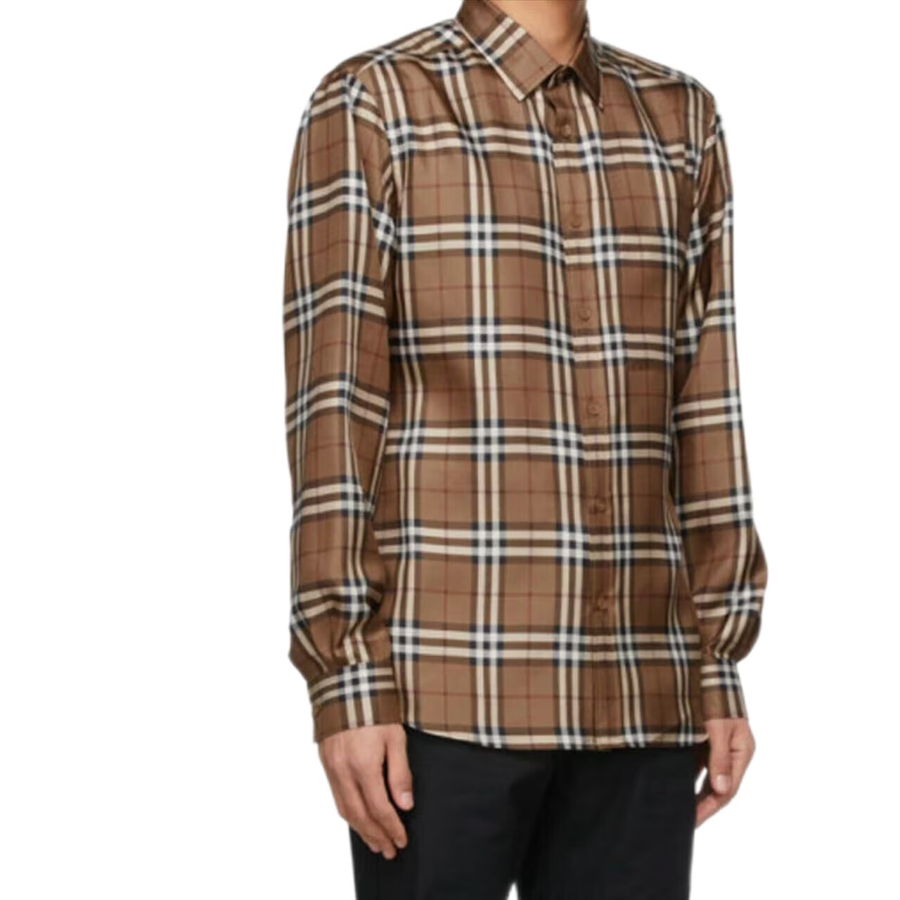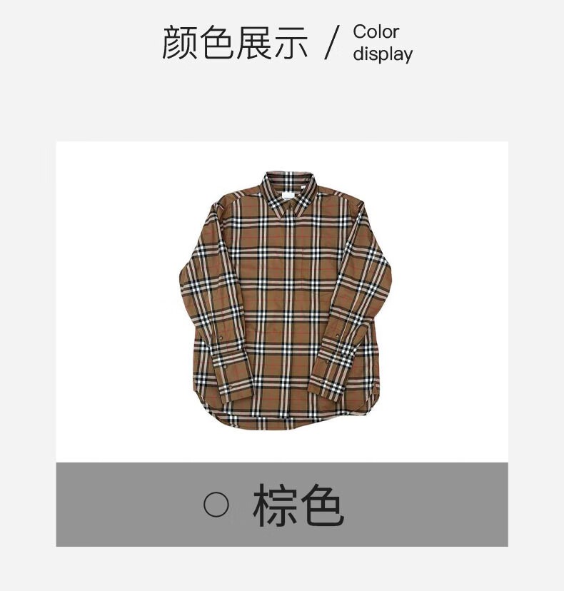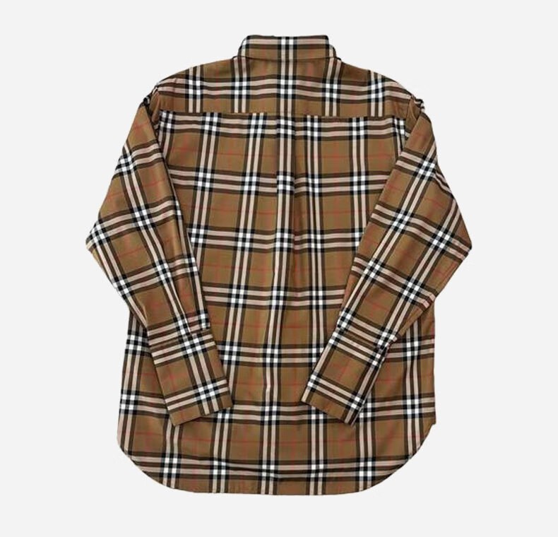 现货 Burberry/博柏利 女士棕色棉质网格纹落肩袖单排扣衬衫80934801