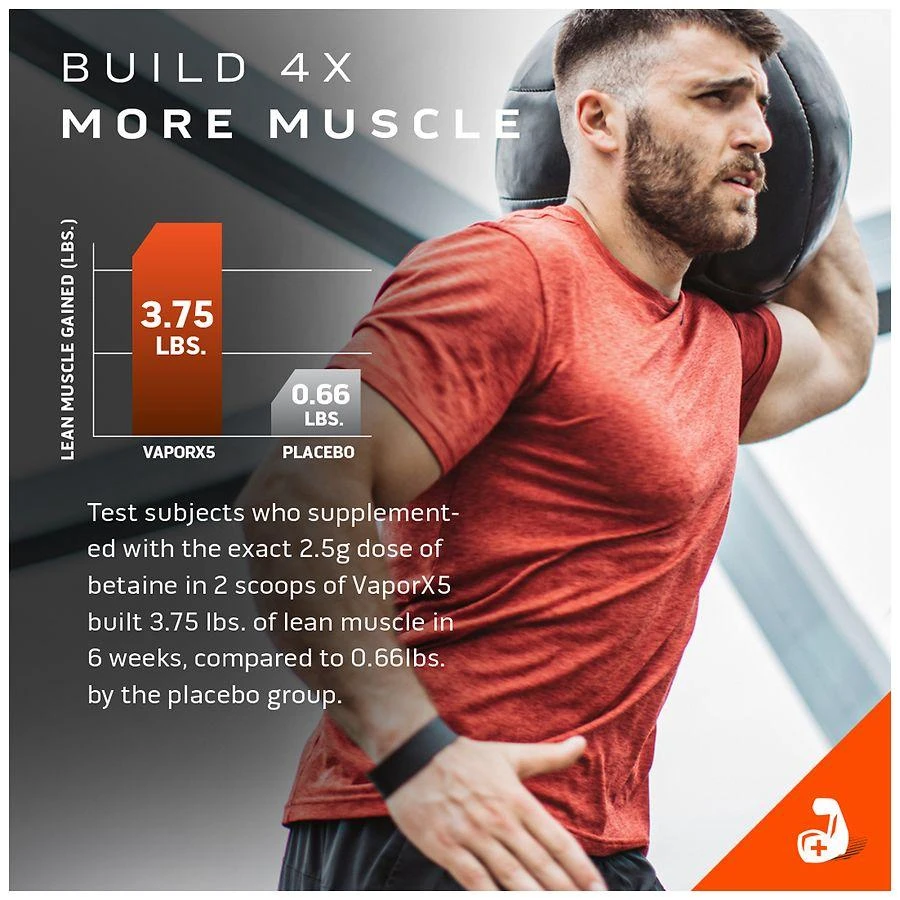 Dietary Supplement. Natural and artificial flavors. 3200 mg beta-alanine (Per 2 scoops). 3000 mg creatine monohydrate (Per 2 scoops). 2500 mg betaine. 1500 mg nitrosigine (Per 2 scoops). From America's no. 1 selling supplement company. Pre-workout. Explosive energy & performance. 30 servings. Research-backed key ingredients. Increase strength & lean muscle. Nitrosigine bonded arginine silicate. Based on AC Nielsen xAOC combined total sales for MuscleTech & Six Star powder & pill supplements. The ultimate pre-workout experience. Looking for an explosive, game-changing pre-workout experience that'll redefine the results of your training? You can stop your search. VaporX5 is your all-in-one-source formula for more lean muscle, strength, energy, focus and insane muscle pumps. The result of year of scientific research and development, we've hand picked key ingredients to help serious competitors crush their goals and enhance their workouts. Refuse to accept the status quo and take your training to the next level with VaporX5. Scientifically validated, performance tested key ingredients. The most complete pre-workout product available, VaporX5 includes powerful musclebuilding ingredients to help you pack on size, including creatine monohydrate - the most researched form of creatine - combined with betaine. In fact, test subjects who supplemented with the exact 2.5 g dose of betaine in 2 scoops of VaporX5 built 3.75 lbs. of lean muscle in 6 weeks compared to 0.66 lbs. by the placebo group. That's over four times more muscle! With more muscle comes greater strength - and with greater strength comes improved performance. Unparalleled energy & focus. Enhance your focus with a precisely dosed key ingredient that'll deliver energy and an intense sensory experience. Research shows that Nitrosigine increases nitric oxide levels. When combined with hawthorn, it delivers shirt-splitting pumps! In addition, we've added a scientifically studied dose of taurine, which has been shown to support performance in endurance athletes. Don't just prepare your body for competition - get your mind in the game. mucletech.com. Seal of authenticity. Download our app to ensure genuine product. muscletech.com/verify. Find us on Facebook. Instagram. Twitter. (at)muscletech. (These statements have not been evaluated by the FDA. This product is not intended to diagnose, treat, cure, or prevent any disease.)