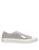 low-top sneakers, leather, canvas, metallic, solid color, brand logo, leather lining, lace-up, round toe, rubber cleated sole, contains non-textile parts of animal origin