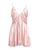 satin, frills, folds, solid color, v-neck, sleeveless, unlined, no pockets, stretch, trapeze style