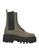 leather, no appliqués, solid color, leather backing, laces, elasticized gores, round toeline, square heel, lug sole, contains non-textile parts of animal origin, chunky boots