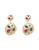 Elegant gold-tone metal earrings designed with a butterfly stud closure. They feature round-shaped pendants, embellished with small colored rhinestones.