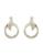 Metal earrings offered with a silver finish. The model has a butterfly stud closure and stands out for the pendant created by two intertwined circles.